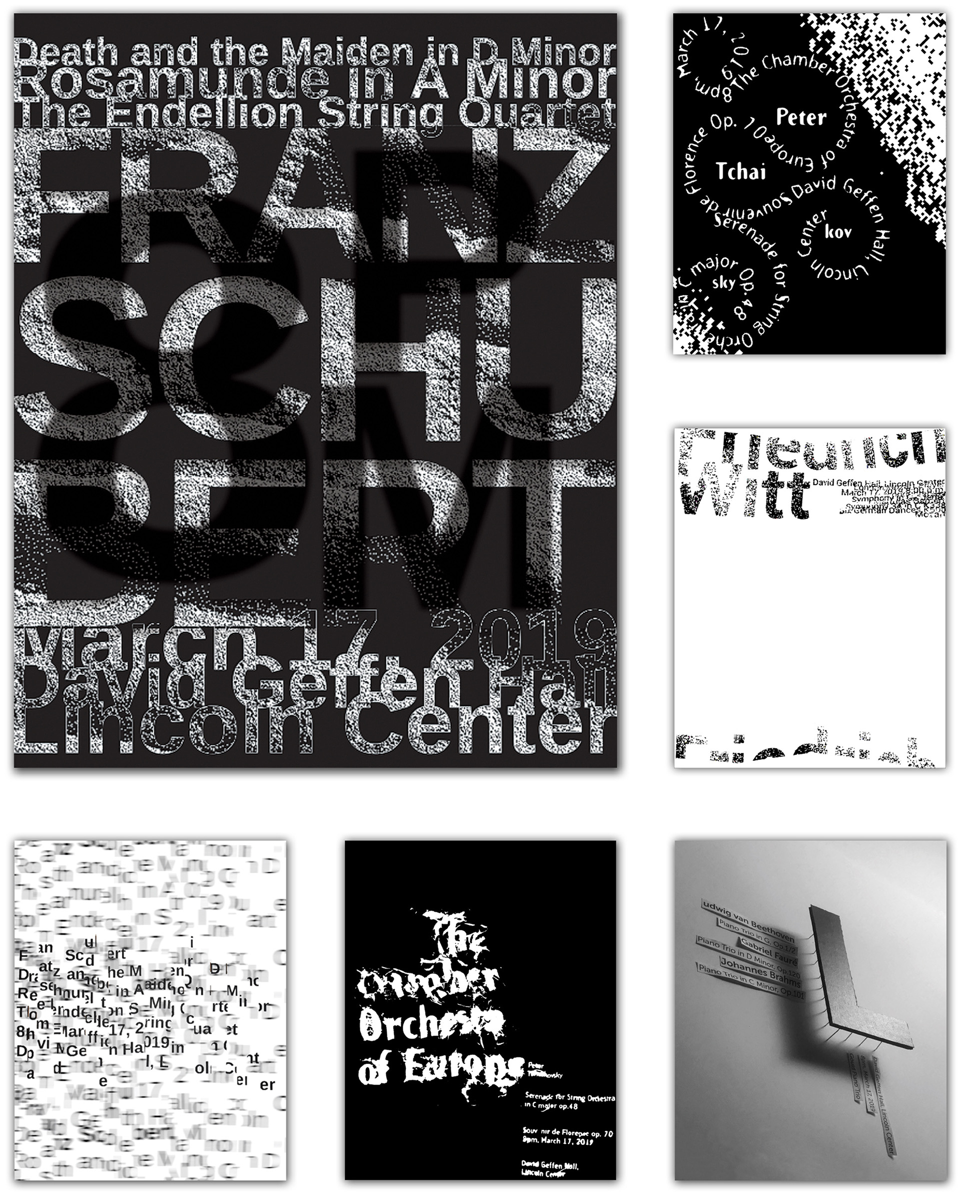 I enjoyed fifteen years as a professor at the Hartford Art School of the University of Hartford, where I was awarded tenure and promotion and served as senior faculty member in the department. Because of life changes, I resigned my position in 2000 and began teaching as an adjunct in graphic design programs in and around New York City. These experiences have given me an extraordinary breadth of students and have given me a graphic design laboratory in which to explore ways to most effectively convey ideas. What I have come to is this single truth: teaching design creativity grows from limitations, not choices. Reduce choices and the only thing left for a student is to add their own creativity. Borrowing creativity – that is, selecting pieces (typefaces and images most often) made by others for use in one’s own work – is not creative. It is editing. Or shopping.