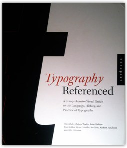 Ina Saltz, Allan Haley, Richard Poulin, et al. ||| Comprehensive. That’s the first word that comes to mind with this remarkable 400-page compilation of information. But that happens to be the first word on the back of the book, chosen by the editors and publicity mavens at the publisher, Rockport. So perhaps it’s suspect. At least, I rarely trust the blurb copy written by marketing people. Instead, let’s try inclusive, thorough, sweeping, or wall-to-wall. Each is an accurate descriptor of this valuable and necessary volume. ||| Typography, Referenced was prepared by a small group of highly-qualified authors. The lead is Ina Saltz, who worked with Allan Haley, Kathryn Henderson, Gerry Leonidas, Richard Poulin, Jason Tselentis, Tony Seddon, and Tyler Alterman. Some of these contributors are world-known, some are up-and-comers showing terrific promise. To a person, they present their sections with clarity and authority. ||| The 8.5″x10″ hardcover book is presented in ten sections, each a thorough and relentless attack on typographic ignorance: “Type History and Timeline,” “Type Classification and Identification,” “Type Design and Development,” “Type Designers,” “Type Foundries,” “Typefaces and Specimens,” “Typographic Principles,” “Contemporary Usage: Designing with Type,” “Typographic Terminology and Language,” and “Type Management.” The eleventh section is a delicious list of “Type-Specific Resources,” like schools, publications, organizations, films, collections, online resources, and illustrated bibliography. (Full disclosure: two of my books are listed in that section.) ||| Good points: 1/ Nothing typographic has been overlooked; 2/ Beautiful full color throughout; 3/ The design of the book is understated and stays out of the way of the tasty content; 4/ Concise seven-page Glossary that covers the essentials for the prospective reader of this book but doesn’t get lost in the weeds of type minutiae – that I admit some readers might miss; 5/ Yummy section on “Contemporary Usage” shows eighty pages of imaginative type used in posters, books, magazines, collateral, identity, advertising, packaging, signage, and interactive. You can’t get excited looking at this? You better reach for a TDC Annual, the only place better stocked with tasty type bits; and 6/ Makes a killer textbook: a seriously-full semester’s read. It also makes an outstanding reference work for pro’s inspiration. ||| On the other hand: 1/ The most-welcome section on Type Designers profiles 69 individuals, and not one of them is shown. The point of describing who they are would have been immeasurably advanced if photos of them had been included. Give them their humanity!; 2/ In the same section, 21 type designers’ work is represented not with samples of their types in use, but with 8p6 squares of letterform abstractions that don’t revel the types adequately. Or, really, at all. Pity no one could secure samples of all 69 designers’ works. The 48 designers who do rate proper descriptive imagery look like first class citizens among the firmament; 3/ The illustrations for the more mundane aspects of type, like Parts of Letterforms, and Type Classification (and to a lesser extent two other sections), do not look as sexy and interesting as the inherently pretty sections of this book. They make the nuts and bolts of type look like a chore. “Creativity” looks more fun, but the functionality of type – its real usefulness – looks second rate and unfunny. That’s an unfortunate message for typographic newbies who most need that material. ||| This is a superb addition to the canon. I recommend it with enthusiasm.